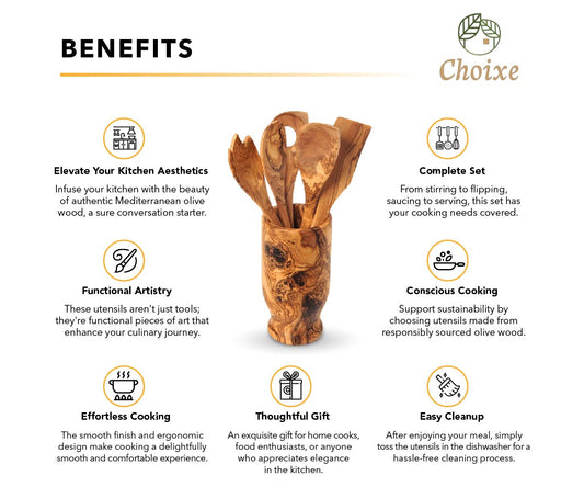 Olive Wood Kitchen Servers Set w/Holder -6 Pcs